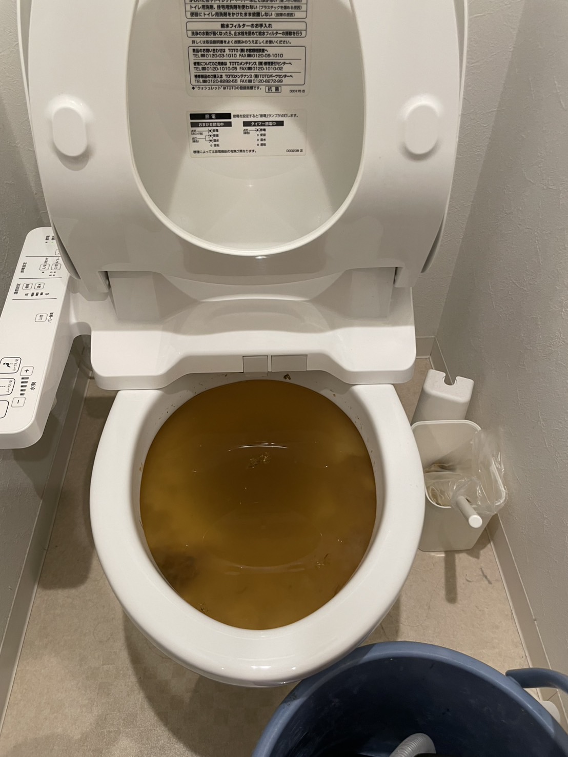 トイレつまりというと、異物を落としてしまったケースを思い浮かべる方も多いのですが、実際には今回のように排水内部に少しずつ汚れが蓄積して起きるパターンもよくあります。毎日の使用のなかで少しずつ通り道が狭くなり、ある日突然流れが悪くなる。そうした変化は見た目では気づきにくいため、違和感を覚えたときの判断が意外と大切になります。