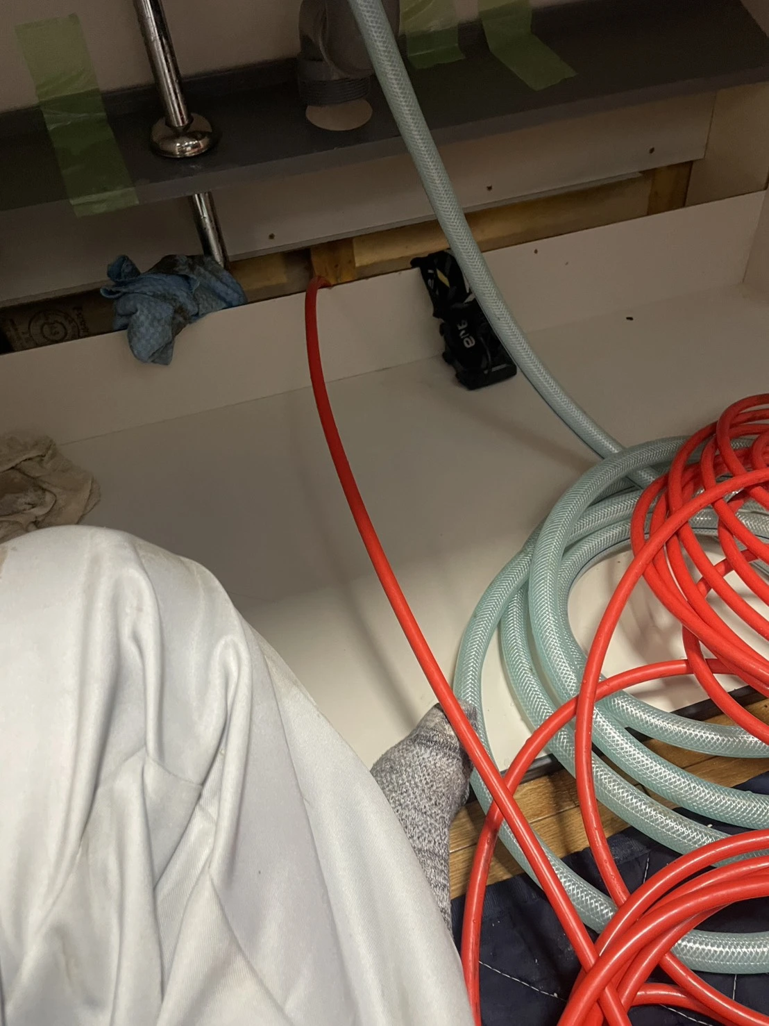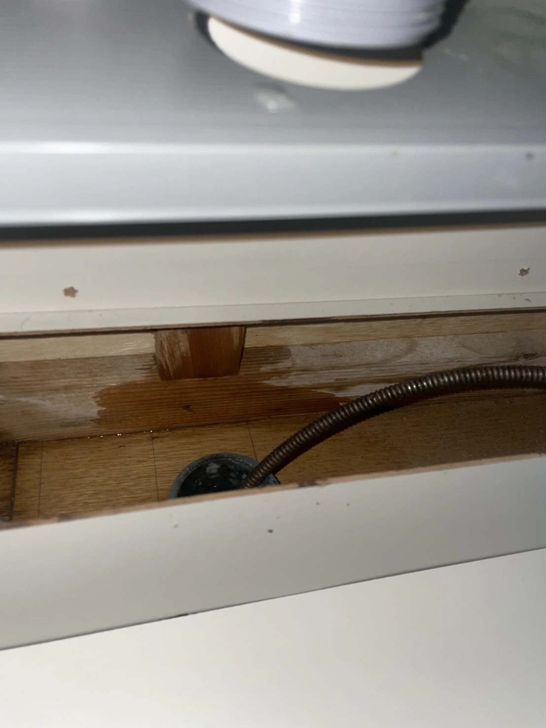この度は水まるへご相談いただきありがとうございました。キッチン下の水漏れは、排水管内部に長年蓄積した油汚れや異物が原因で排水不良を起こし、水が逆流していたことによるものでした。