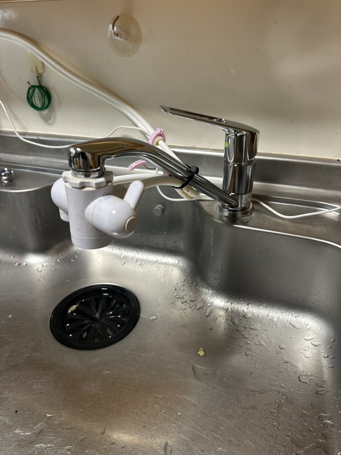 この度は水まるへご依頼いただき、誠にありがとうございました。台所蛇口からの水漏れとのことで現地確認を行ったところ、内部カートリッジや接続部品の経年劣化が進行しており、部分的な補修では再発の可能性が高い状態でした。